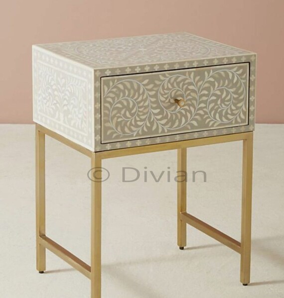 View Bone Inlay Lamp Base US. Are you a fan of bone inlay furniture? Bone inlay side table, lamp table, bone inlay bedside, bone inlay stool, handmade furniture, bone furniture, brass furniture.